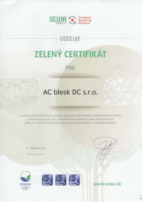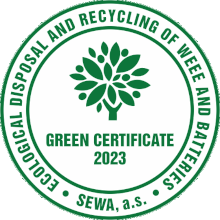 Sme členmi spoločenstva SEWA, zabezpečujeme likvidáciu elektroodpadu a použitých akumulátorov. Recyklačné poplatky sú zahrnuté v cene služieb.